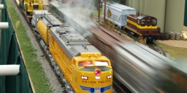 It takes 4-8 members 3-5 hours to put the layout together and get it operational for a show, depending on the size of the layout. It take about 2/3 of the set-up time to take the layout down, re-rack it and reload it into the trailer